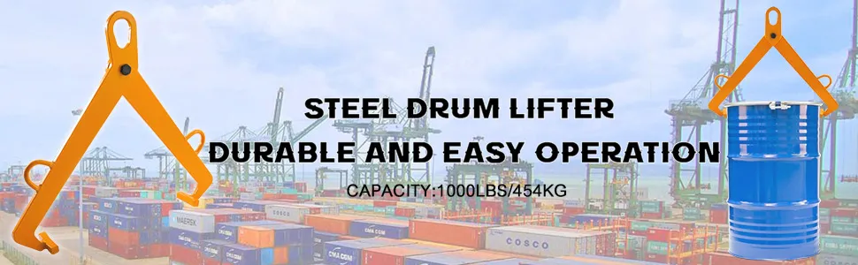 Hier bieten wir Ihnen einen Aufhänger an. Diese aus hochwertigem Stahl gefertigte Trommelklemme ermöglicht ein schnelles und schonendes Laden in Umverpackungen und hält die Trommeln beim Heben und Bewegen aufrecht. Es kann Fässer mit Kraftstoff, Mais und vielem mehr bewegen und wiegt bis zu 1000 Pfund. Es ist robust und langlebig. Wir empfehlen: Überprüfen Sie die Hakenposition, bevor Sie die Trommel anheben.