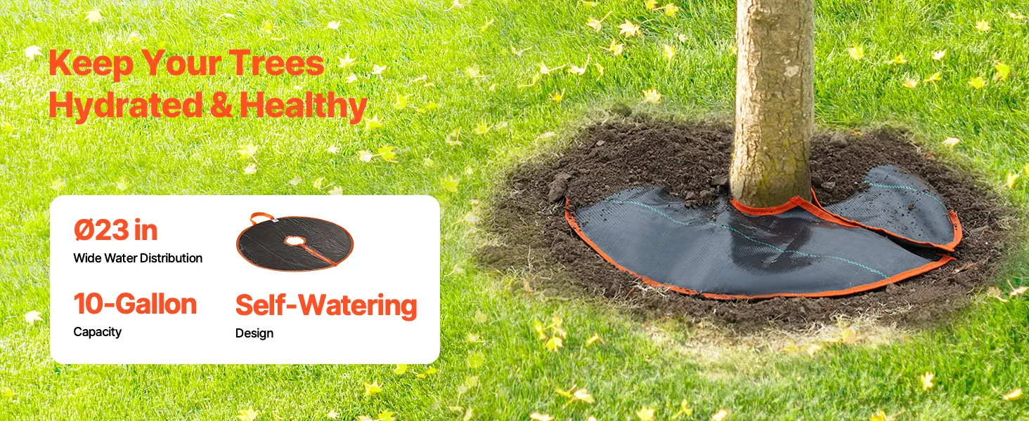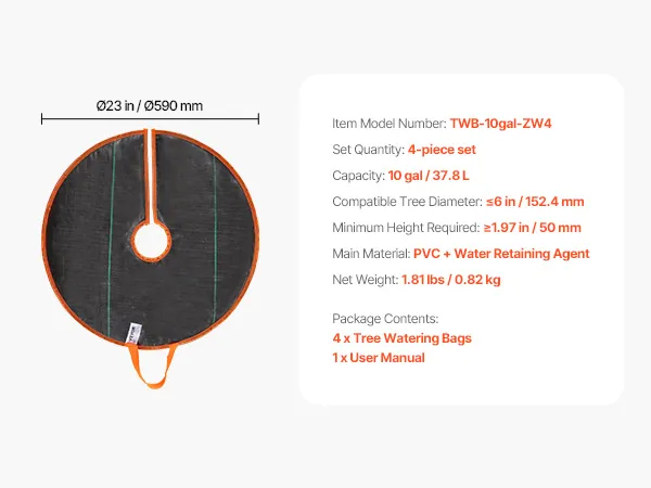 Einfach zu installieren: Weichen Sie den Beutel einfach in Wasser ein, bis er vollständig aufgesogen ist, und wickeln Sie ihn dann um den Baumstamm. Für bessere Ergebnisse können Sie den Beutel mit grobem Mulch, wie z. B. Holzspänen, bedecken. Während der Trockenzeit wird empfohlen, den Beutel und den umgebenden Boden regelmäßig zu überprüfen und bei Bedarf Wasser nachzufüllen.