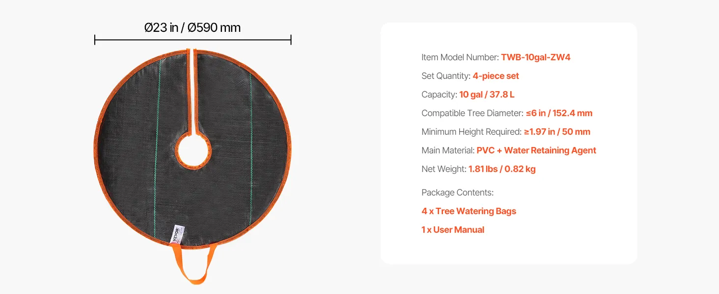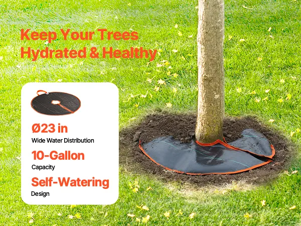Fördert gesundes Baumwachstum: Mit einem Fassungsvermögen von 10 Gallonen (37,8 l) und einem Durchmesser von Ø23 Zoll (Ø590 mm) bietet dieser Baumbewässerungsbeutel eine breite Abdeckung rund um die Baumwurzeln. Das langsam freisetzende Wassersystem versorgt die Baumwurzeln direkt und hilft Bäumen, nach dem Umpflanzen oder bei heißen Sommerbedingungen zu gedeihen.