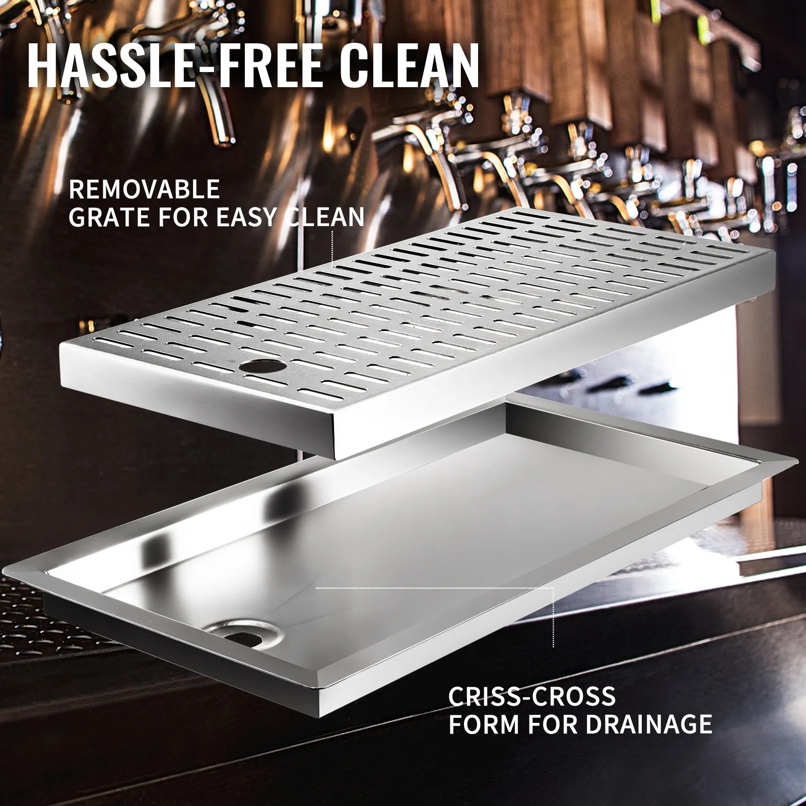 • 【LANGLEBIG & ELEGANT】 - Diese Biertropfschale mit Abfluss aus Edelstahl ist langlebig, rostfrei und kratzfest. Die gebürstete Oberfläche verleiht dem Tablett ein elegantes und klassisches Aussehen. Es ist auch leicht mitzunehmen und mit einem leichten Design und einem abnehmbaren Rost einfach zu reinigen.
