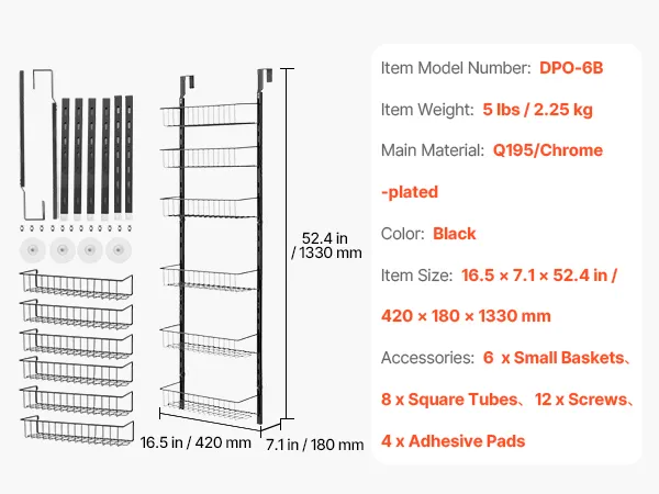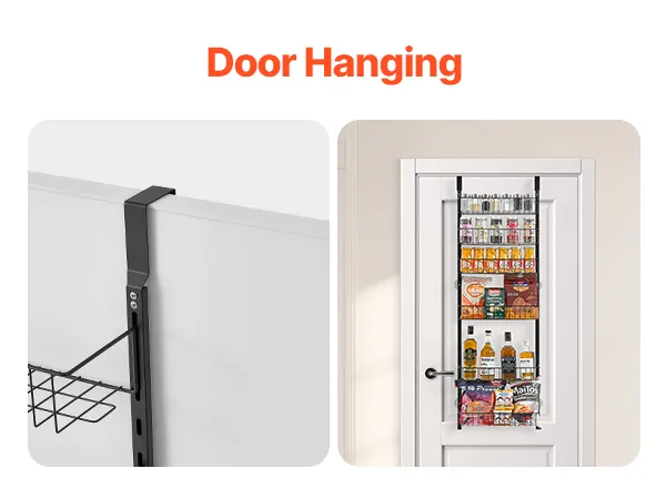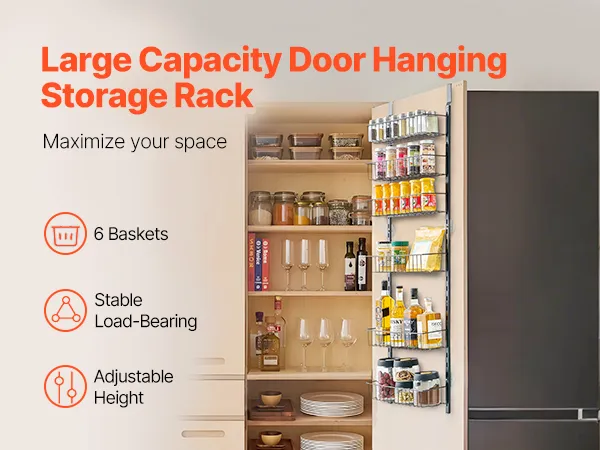 Dieser über der Tür hängende Vorratsschrank-Organizer verfügt über 6 große Körbe und maximiert so Ihre Lagerkapazität! Sie können ihn als Vorratsschranktür-Organizer, Gewürzregal oder Schrank-Organizer verwenden – perfekt für kleine Räume.