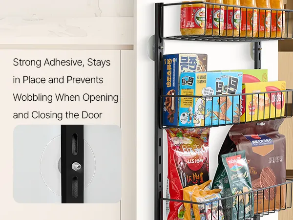 Verstellbar & einfach zu installieren: Dieses Vorrats- und Aufbewahrungsregal verfügt über einen verstellbaren Korbabstand, um Gegenstände unterschiedlicher Höhe unterzubringen. Sie können es an die Tür hängen oder mit den mitgelieferten Schrauben an der Wand befestigen. Die Montage ist in wenigen Minuten erledigt