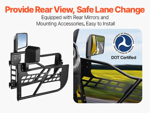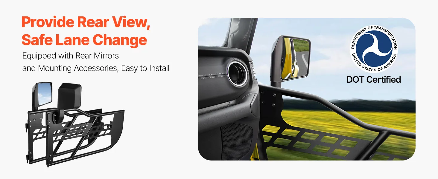Seitenspiegel enthalten: Ausgestattet mit DOT-zertifizierten Seitenspiegeln für bessere Sicht nach hinten und sicherere Spurwechsel. Die Spiegel lassen sich mit sicheren Befestigungselementen einfach installieren, während Gummipolster für zusätzliche Stabilität sorgen und Vibrationsgeräusche auf unebenem Gelände minimieren