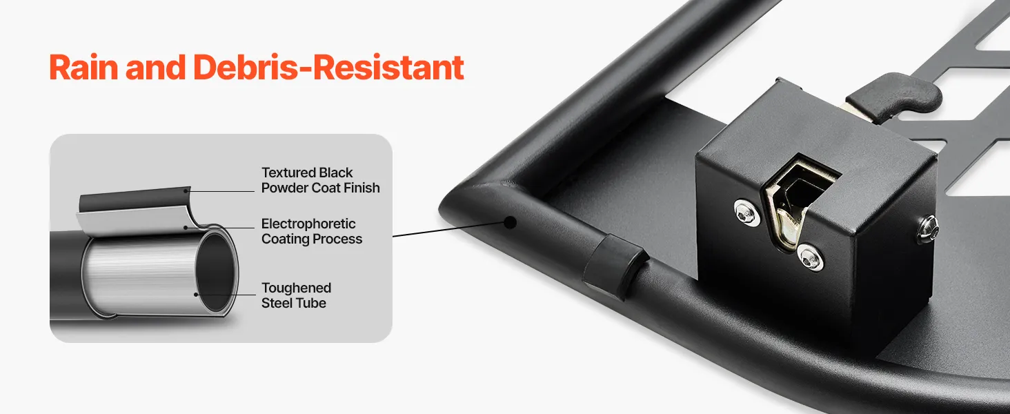 Robuste Stahlkonstruktion: Diese Türen bestehen aus verstärkten Stahlrohren und sind mit einer elektrophoretischen und strukturierten Beschichtung versehen. Sie bieten außergewöhnliche Haltbarkeit und Korrosionsbeständigkeit. Sie sind widerstandsfähig gegen Sand, Steine und Regen und Ihr zuverlässiger Begleiter bei Outdoor-Abenteuern