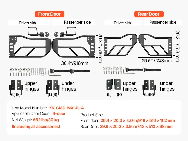 Kompatibilität: Diese Rohrtüren wurden für den Jeep Wrangler JL 2018–2024 und den Jeep Gladiator JT 2020–2024 mit einem robusten Adventure-Look entworfen und passen sowohl auf die Fahrer- als auch auf die Beifahrerseite vorne und hinten. Der komplette Satz mit vier Türen ist nur für den Einsatz im Gelände konzipiert und nicht als Sicherheitsgurt gedacht. Legen Sie immer Ihren Sicherheitsgurt an und fahren Sie vorsichtig. Vermeiden Sie scharfe Kurven und plötzliche Manöver