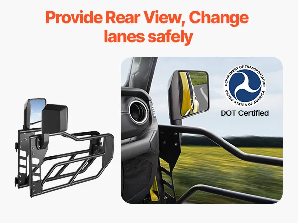 Seitenspiegel enthalten: Ausgestattet mit DOT-zertifizierten Seitenspiegeln für bessere Sicht nach hinten und sicherere Spurwechsel. Die Spiegel lassen sich mit sicheren Befestigungselementen einfach installieren, während Gummipolster für zusätzliche Stabilität sorgen und Vibrationsgeräusche auf unebenem Gelände minimieren