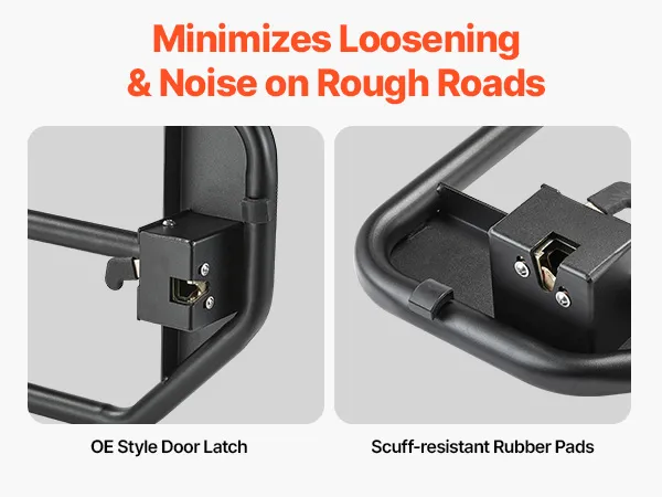 OE-Verriegelung mit Gummipolstern: Die Hochleistungsverriegelungen der Jeep-Rohrtür sorgen für einen sicheren Sitz mit dem werkseitigen Türverriegelungssystem für einen reibungslosen Betrieb. Verbesserte dicke Gummipolster vermeiden Kratzer beim Öffnen und Schließen und verringern Klappergeräusche auf unebenem Gelände und bei hoher Geschwindigkeit