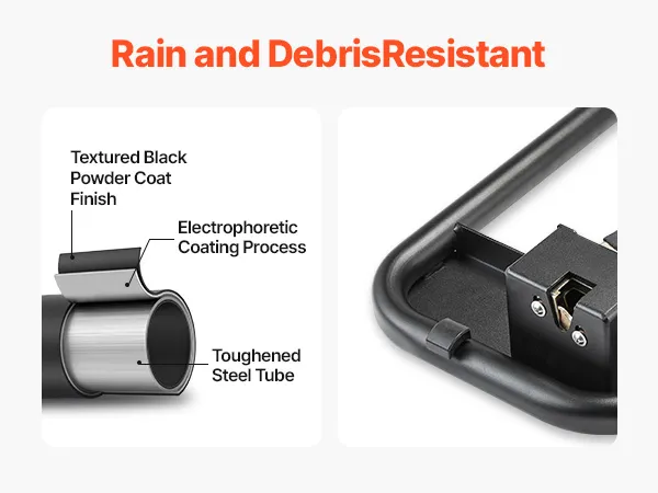 Robuste Stahlkonstruktion: Diese Türen bestehen aus verstärkten Stahlrohren und sind mit einer elektrophoretischen und strukturierten Beschichtung versehen. Sie bieten außergewöhnliche Haltbarkeit und Korrosionsbeständigkeit. Sie sind Sand, Steinen und Regen gewachsen und Ihr zuverlässiger Begleiter bei Outdoor-Abenteuern