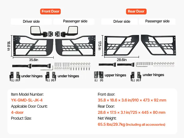 Kompatibilität: Diese Rohrtüren wurden für den Jeep Wrangler JK 2007–2018 mit einem robusten Jagd-Look entworfen und passen sowohl auf die Fahrer- als auch auf die Beifahrerseite vorne und hinten. Der komplette Satz mit vier Türen ist nur für den Einsatz im Gelände konzipiert und nicht als Sicherheitsgurt gedacht. Legen Sie immer Ihren Sicherheitsgurt an und fahren Sie vorsichtig, vermeiden Sie scharfe Kurven und plötzliche Manöver
