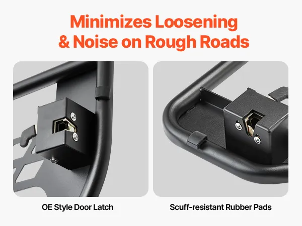 OE-Verriegelung mit Gummipolstern: Die Hochleistungsverriegelungen der Jeep-Rohrtür sorgen für einen sicheren Sitz mit dem werkseitigen Türverriegelungssystem für einen reibungslosen Betrieb. Verbesserte dicke Gummipolster vermeiden Kratzer beim Öffnen und Schließen und verringern Klappergeräusche auf unebenem Gelände und bei hoher Geschwindigkeit