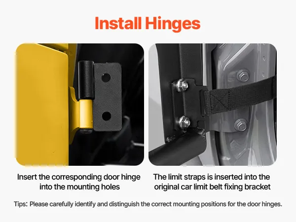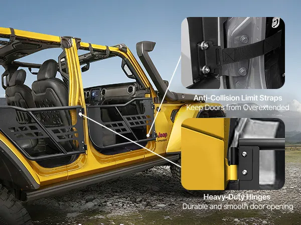 Einfache Installation: Diese Jeep-Rohrtüren sind mit hochbelastbaren Scharnieren ausgestattet und erfordern weder Bohren noch Schweißen. Sie können problemlos an den werkseitigen Türscharnieren installiert werden. Die mitgelieferten Nylon-Begrenzungsgurte verhindern eine Überdehnung und verringern so das Kollisionsrisiko