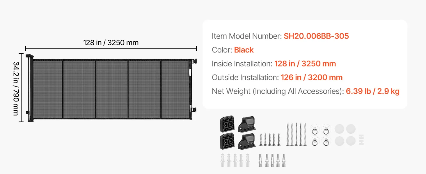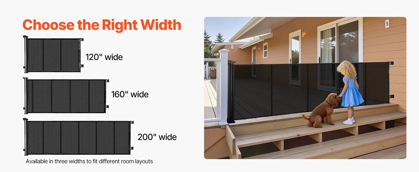 Extrabreites Design: Dieses einziehbare Babygitter lässt sich auf bis zu 122 Zoll Breite und 31,3 Zoll Höhe ausziehen – ideal für breite Türen, Treppen, Terrassen und offene Bereiche. Es schafft in Sekundenschnelle sichere Zonen für Haustiere oder Kleinkinder