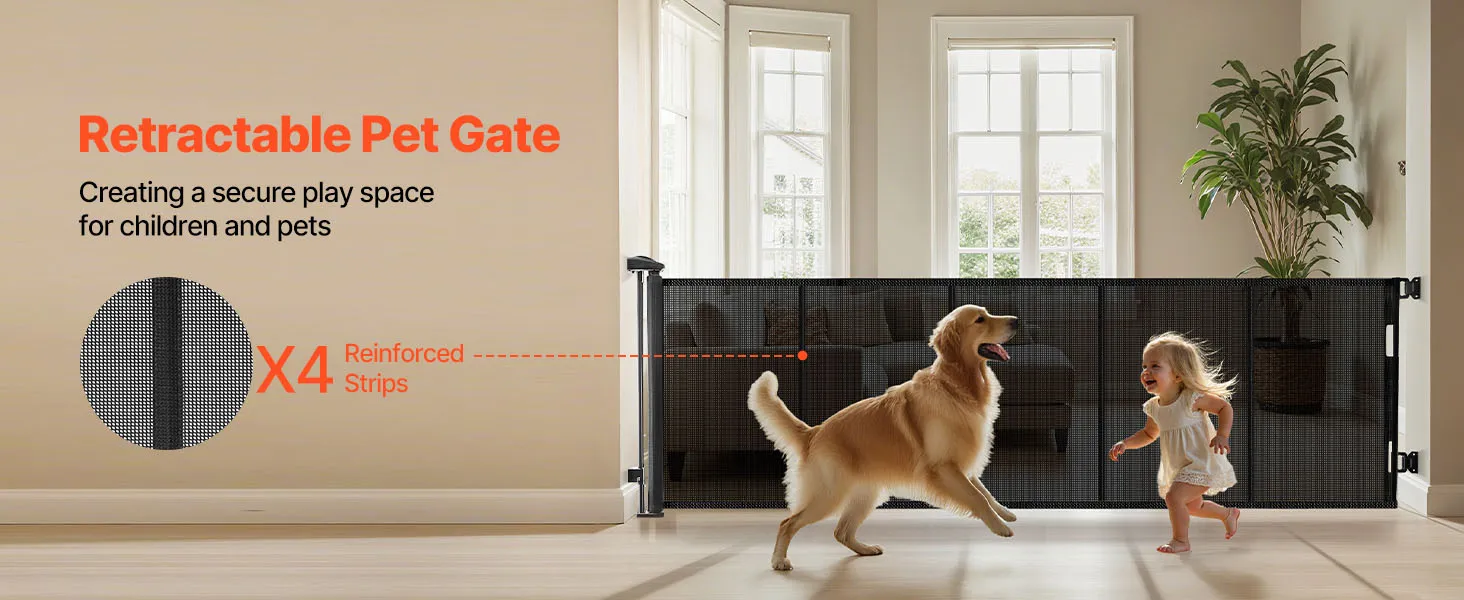 Mit seinen klaren Linien, neutralen Farbtönen und dem einziehbaren Design passt dieses einziehbare Hundegitter zu vielen Einrichtungsstilen – von modernen Wohnungen bis hin zu gemütlichen Bauernhäusern. Funktional muss nicht sperrig sein.