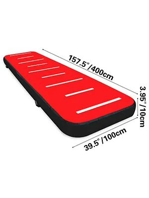 • 【ERSTKLASSIGE DICHTUNGSTECHNOLOGIE】 - 400x100x10CM Luftschienen-Taumelmatte aus hochwertigem PVC-Material. Durch den Heißsiegelprozess bietet unsere Luftschienenmatte eine hervorragende Luftdichtheit und keine Luftleckage. Im Gegensatz zu anderen haben unsere zwei Farben auf einer Matte, eine Seite ist rot, die andere ist grün, geeignet für unterschiedliche Stimmungen und Ereignisse.