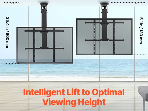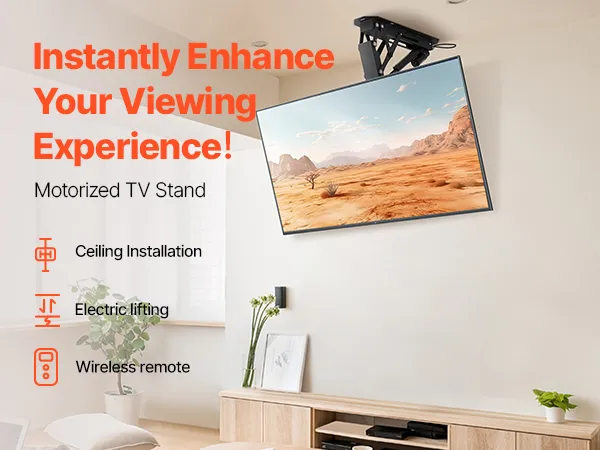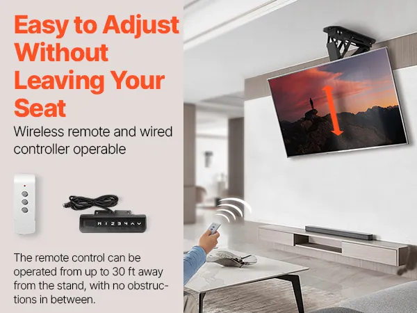 Ihre robuste Struktur trägt das Gewicht des Fernsehers und der ferngesteuerte Lift ermöglicht eine flexible Höhenverstellung, um einen optimalen Betrachtungswinkel in verschiedenen Umgebungen sicherzustellen.