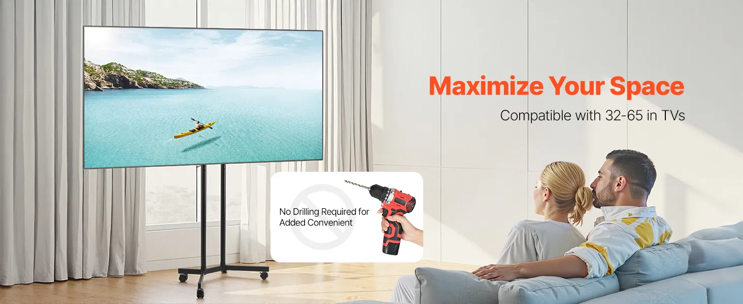 Diese tragbare TV-Halterung verfügt über ein kompaktes Design, ist ideal für kleine Räume und für alle geeignet, die nicht möchten, dass ihr Fernseher den ganzen Raum einnimmt.