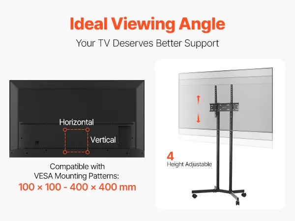 Dieser bewegliche TV-Ständer erfüllt mit seinen verschiedenen Einstellmöglichkeiten unterschiedliche Sehgewohnheiten und sorgt dafür, dass sich Ihr Fernseher immer auf der idealen Höhe für bequemes Fernsehen befindet.