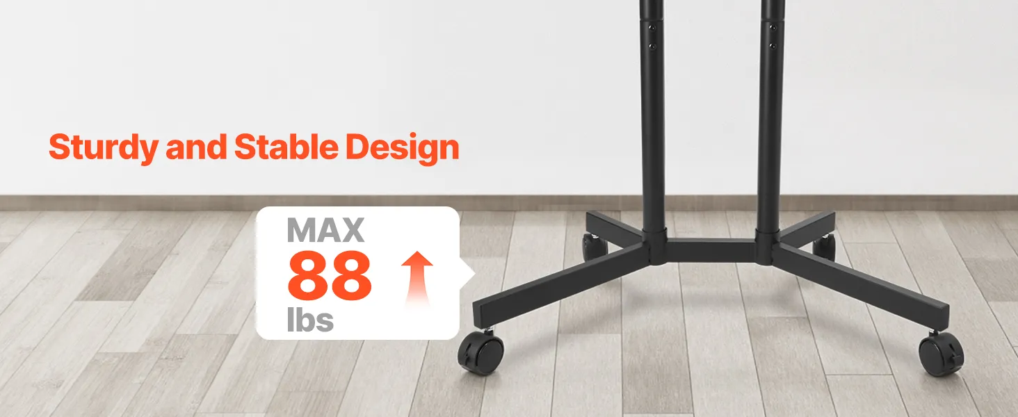 Unser beweglicher TV-Ständer ist auf Stabilität ausgelegt und trägt bis zu 40 kg. So wird sichergestellt, dass Ihr Fernseher beim Fernsehen stabil und wackelfrei bleibt und Sie entspannt fernsehen können.