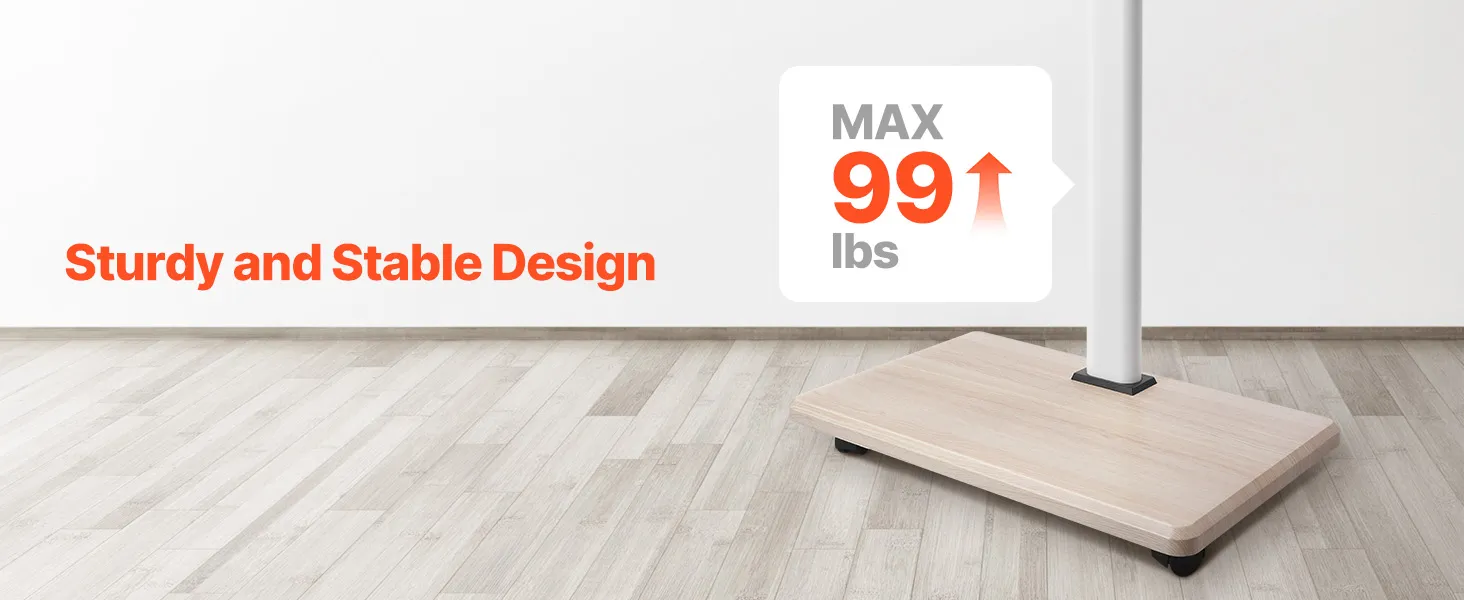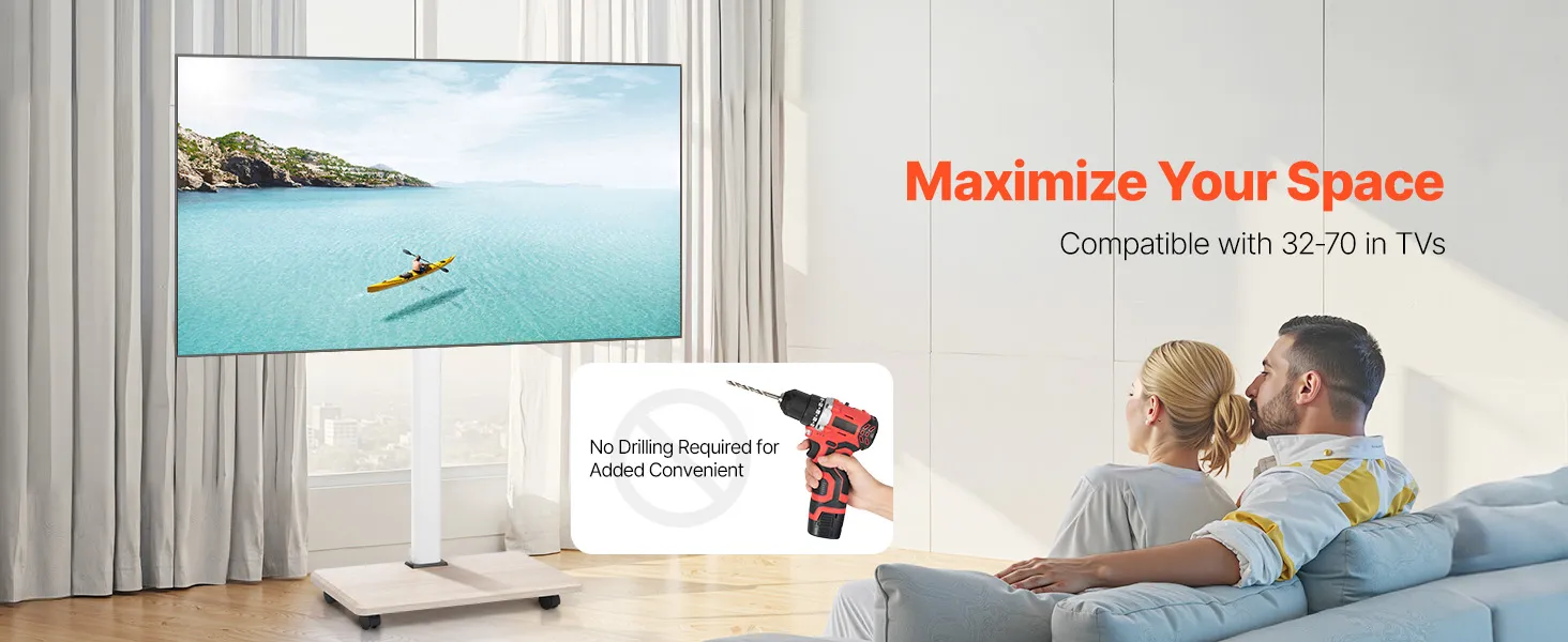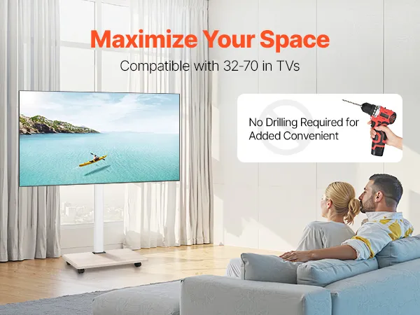 Unser beweglicher TV-Ständer ist auf Stabilität ausgelegt und trägt bis zu 45 kg. So wird sichergestellt, dass Ihr Fernseher beim Fernsehen stabil und wackelfrei bleibt und Sie entspannt fernsehen können.