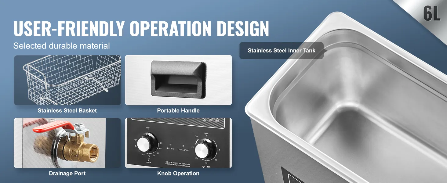Starke Reinigungsleistung: Der VEVOR-Ultraschallreiniger arbeitet mit einer ultrahohen Frequenz von 40 kHz und erzeugt Millionen kleiner Blasen, die im Wasser explodieren und eine starke Reinigungsenergie freisetzen. Diese Energie dringt in jede Ritze ein und entfernt selbst hartnäckige Verschmutzungen von empfindlichen Teilen so gründlich, dass kein Bereich ungereinigt bleibt.