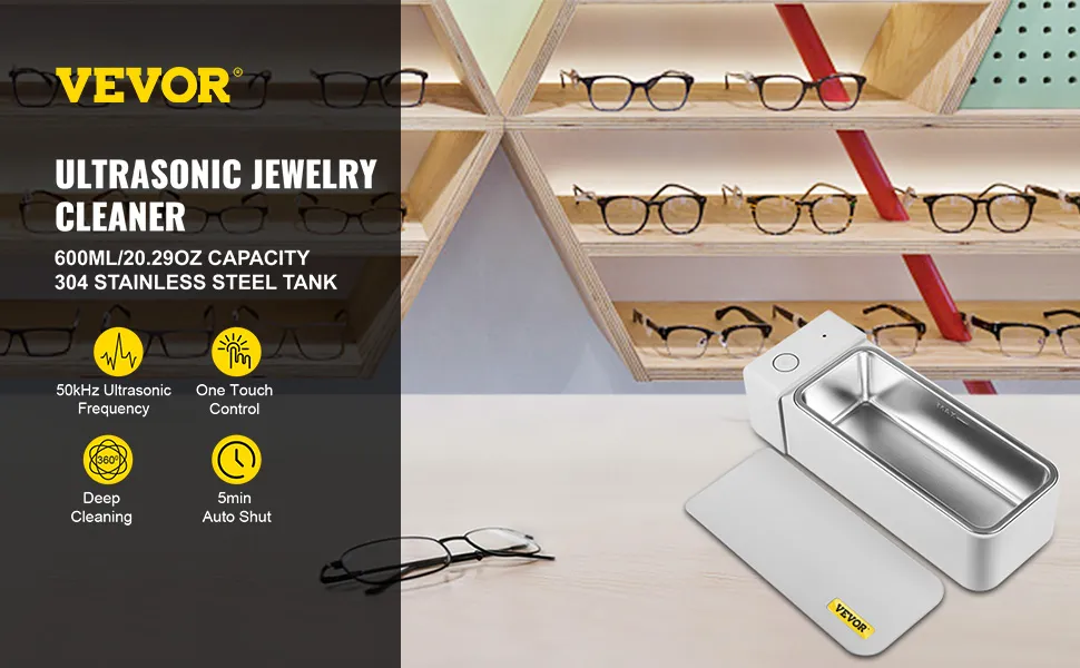 Diese Brillenreinigungsmaschine besteht aus robustem Edelstahl 304 und ABS-Kunststoff und ist somit eine effiziente Maschine für tägliche oder professionelle Reinigungsarbeiten. Unser Ultraschall-Prothesenreiniger sendet 50-kHz-Ultraschallwellen aus, um Schmutz auf der Oberfläche und dem Spalt Ihrer Wertsachen zu waschen. Mit einem Knopfdruck ist der professionelle Schmuckreiniger ideal zum Reinigen von Schmuck, Brillen, Uhren, Zahnersatz, Make-up-Pinseln usw.