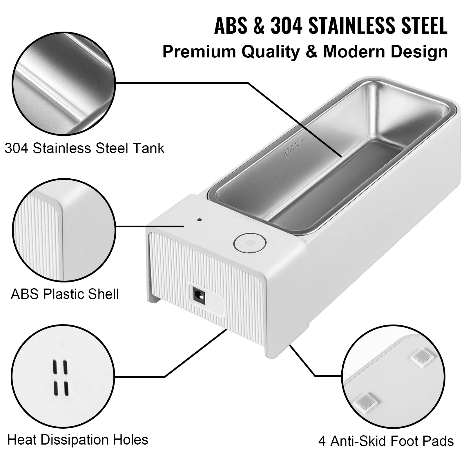 Die Ultraschall-Schmuckreinigungsmaschine verfügt über eine kompakte Größe mit einem großen Fassungsvermögen von 600 ml. Sie können den Reiniger in den Schrank oder Koffer stellen.