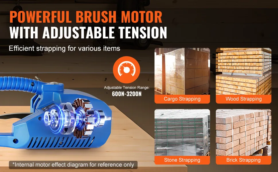 Dieses elektrische Umreifungsgerät mit seinem leistungsstarken bürstenlosen Motor bietet Ihnen eine gleichmäßige und starke Leistung. Sie brauchen keine Muskelkraft. Es eignet sich für alle Arten von Verpackungsarbeiten, von Papier und Aluminium bis hin zu Stahl und Holz.