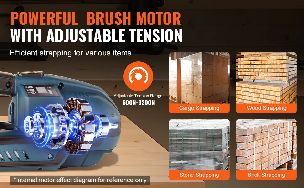 Dieses elektrische Umreifungsgerät mit seinem leistungsstarken bürstenlosen Motor bietet Ihnen eine gleichmäßige und starke Leistung. Sie brauchen keine Muskelkraft. Es eignet sich für alle Arten von Verpackungsarbeiten, von Papier und Aluminium bis hin zu Stahl und Holz.