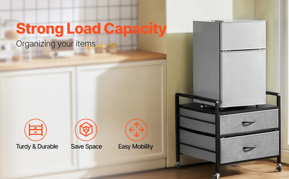 Dieses mobile Mini-Kühlschrankregal verfügt über 2 robuste, wasserdichte Schubladen, die reichlich Stauraum für Lebensmittel, Kleidung, Spielzeug oder Haushaltsgegenstände bieten. Sorgen Sie für Ordnung in Ihrem Zuhause und nutzen Sie den Platz optimal aus.