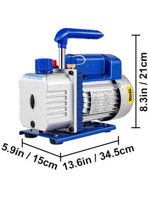 Unsere 9CFM 1HP-Vakuumpumpe ist die Ausrüstung für die Erzeugung eines Vakuums durch Abpumpen von Gasen aus einem versiegelten Behälter. Sie eignet sich besonders für die Klimatisierung von Haushalten, die Wartung von Fahrzeugen, die Vakuumverpackung und das Vakuum in Kühlschränken. Sie verfügt über eine Evakuierung und eine zweistufige Drehschieberkonstruktion und hat eine leichte Aluminiumgusskonstruktion, die für eine lange Lebensdauer sorgt.