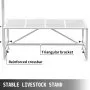 The stock trimming stand is equipped with three steel crossbars and two triangular brackets to support the wire mesh floor.