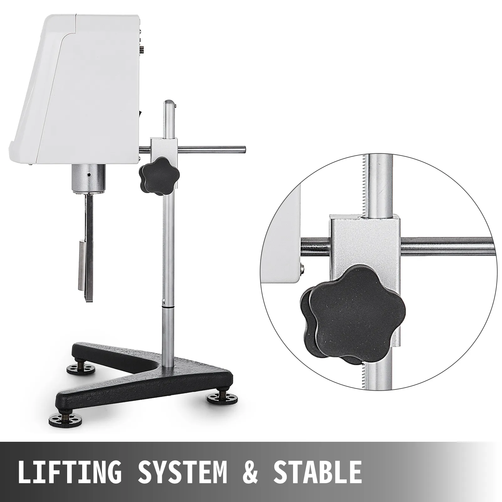 【HOCHWERTIGES & HEBENSYSTEM】- Das digitale Rotationsviskosimeter ist aus hochwertigem Aluminiummaterial hergestellt. Das Aluminiumgehäuse kann statische Störungen wirksam herausfiltern; die Konstruktion des Hebesystems lässt sich leicht auf- und abwärts bewegen, und es ist nicht leicht zu verrutschen.