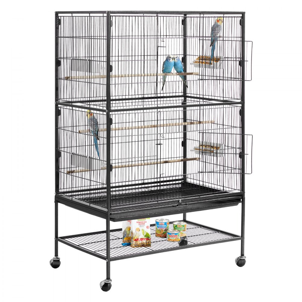 VEVOR Vogelkäfig, 800x520x1320 mm, Vogelvoliere aus Schmiedeeisen mit Sitzstangen, Schale & Kunststofffutternäpfen, Rollen, Vogelhaus für Papageien, Blaumeisen, Nymphensittiche & Kanarienvögel
