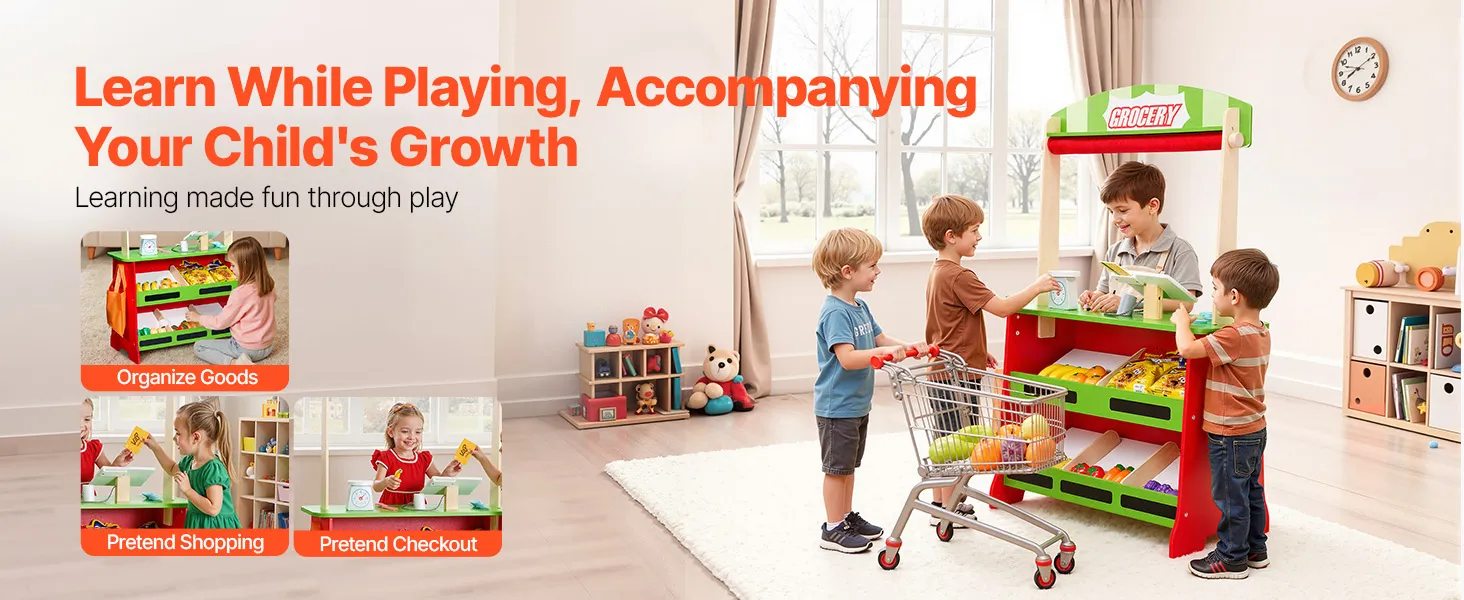 Dieses Lebensmittelladen-Spielset ist für Kinder ab 3 Jahren konzipiert und fördert das spielerische Lernen! Es fördert die Entwicklung kognitiver, mathematischer, logischer und sozialer Fähigkeiten – ideal für das Wachstum und die Entwicklung Ihres Kindes.