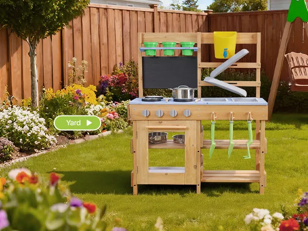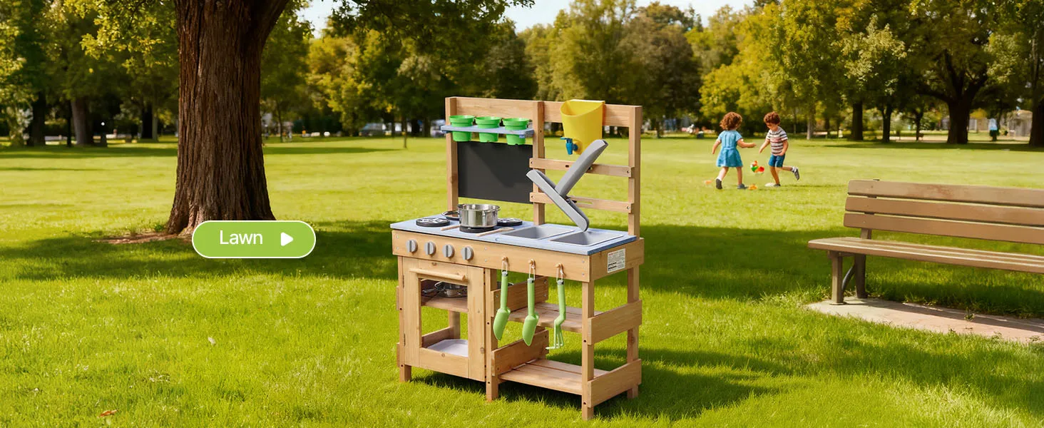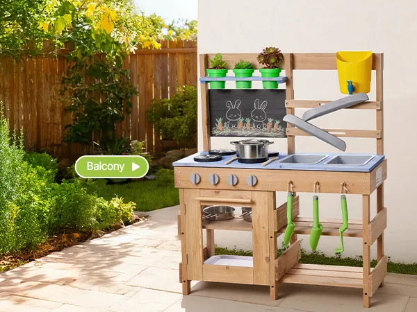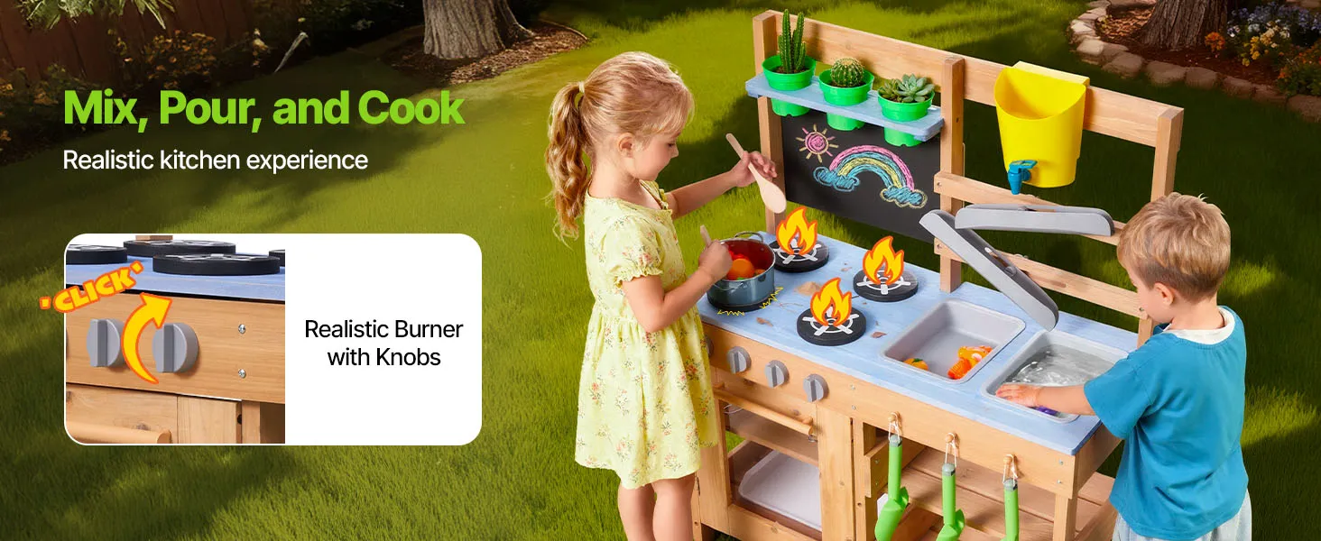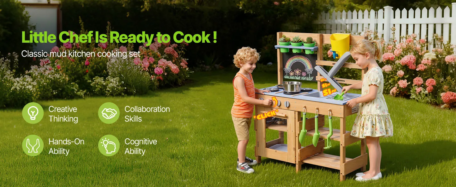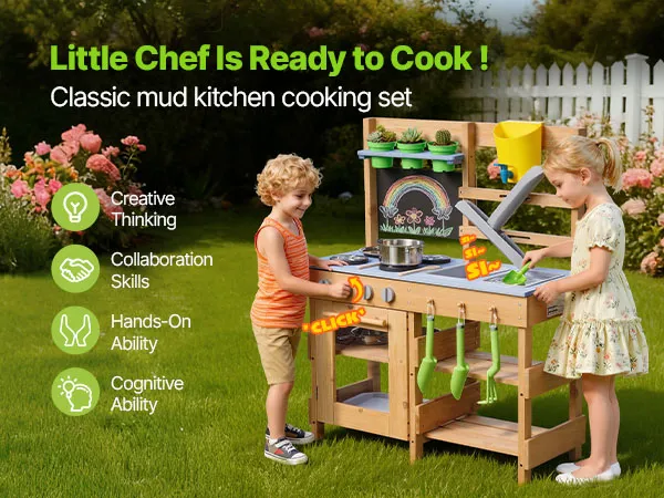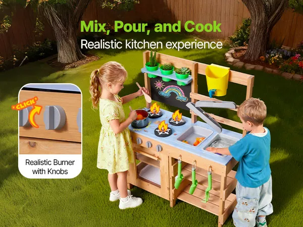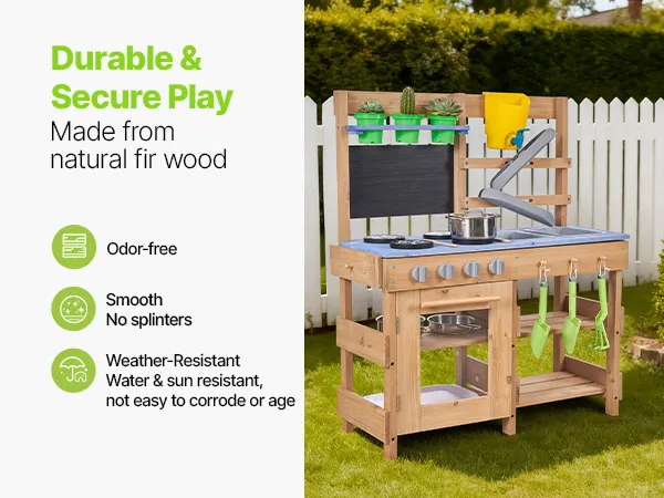 Diese Spielküche für Kleinkinder wurde für Outdoor-Abenteuer mit Schlamm, Wasser und Natur entwickelt und lässt Kinder wie echte Köche mit Erde kochen!