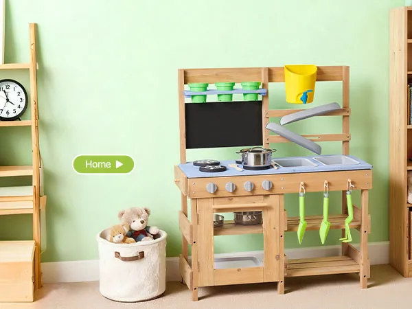 Wassertank & abnehmbares Spülbecken: Diese Spielküche verfügt über einen integrierten Wassertank mit zwei Spülbecken. So können Kinder mit Wasser spielen, Spielzeugessen waschen und Pflanzen gießen. Spielerisch werden Feinmotorik, Sinneswahrnehmung und Neugierde gefördert.