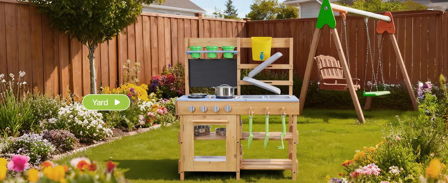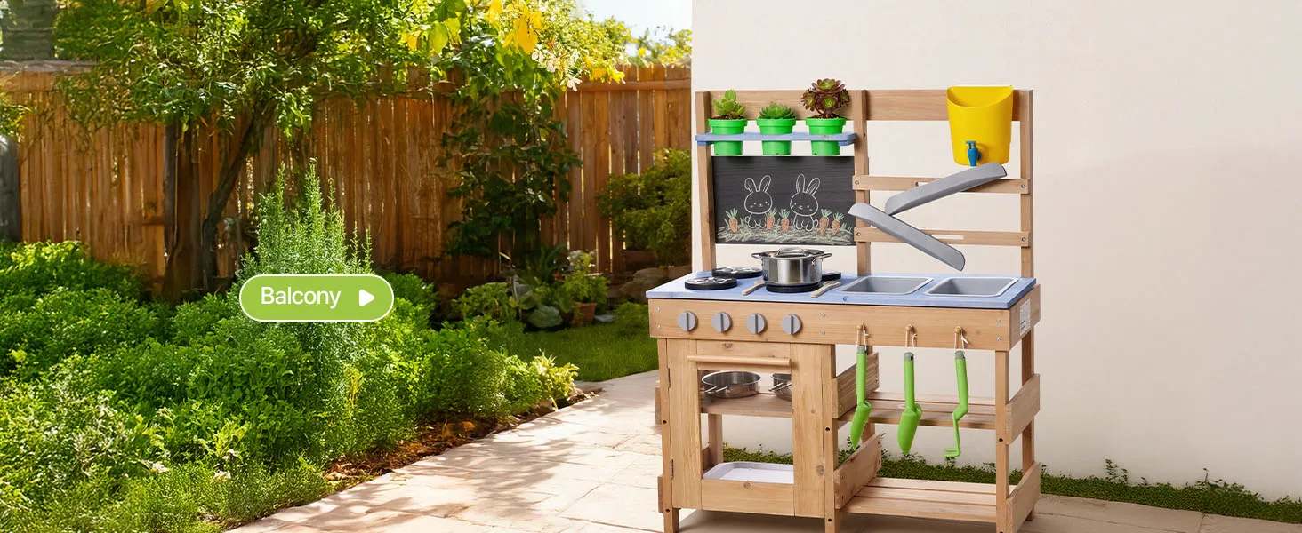 Kompakt und platzsparend: Mit einer Gesamtgröße von 762 x 324 x 914 mm ist diese Spielzeugküche für Kinder im Freien leicht zu bedienen, ohne dass man sich bücken muss. Sie eignet sich für Hinterhöfe, Gärten oder Terrassen und schafft eine eigene Spielecke im Freien.