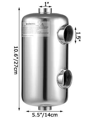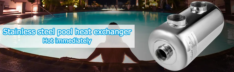 Der Wärmetauscher aus Edelstahl verfügt über eine kontinuierliche konstante Temperatur und kann Wärme indirekt zwischen jedem Warmwasserkreislauf, Dampfkreislauf und jeder Pool- oder Spa-Anwendung übertragen.