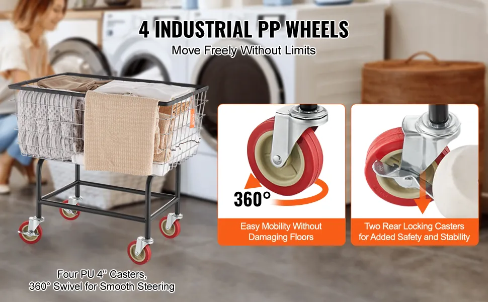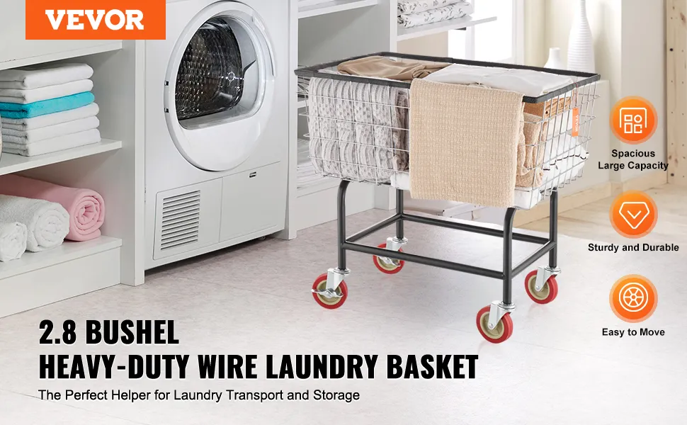 Dieser VEVOR-Wäschewagen aus Draht verfügt über 4-Zoll-Rollen. Diese Räder erleichtern das Bewegen des Wagens über verschiedene Oberflächen. Sie rollen problemlos auf Fliesen, Hartholz und Teppich. Die Mover ermöglichen auch einfache Wendungen und enge Manövrierbarkeit. So lässt er sich bequem um Möbel und Ecken herum manövrieren und er verfügt über Feststeller, um den Wagen bei Bedarf stabil zu halten. Diese Funktion stellt sicher, dass der Wagen an Ort und Stelle bleibt, während Sie Wäsche ein- oder ausladen. Die einfache Manövrierbarkeit dieses Wagens reduziert den Stress, der mit Wäschearbeiten verbunden ist.