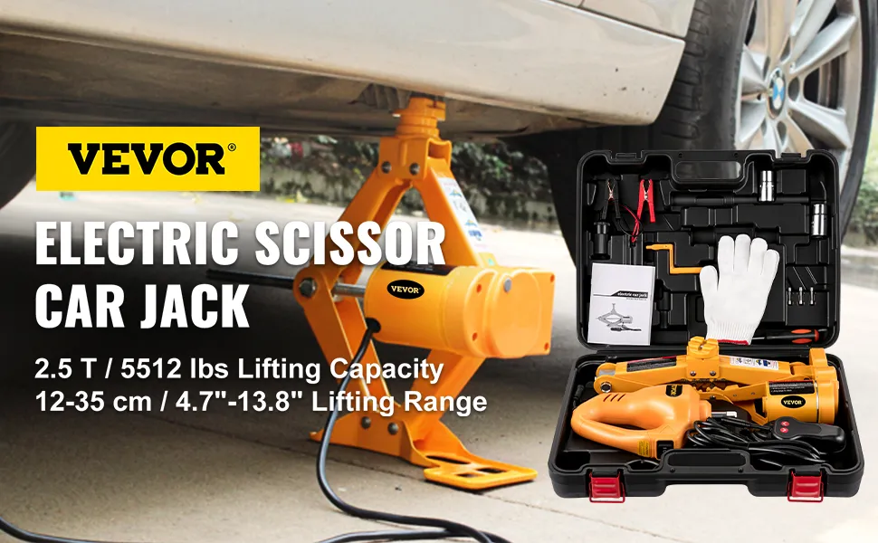 • Tragfähigkeit & Hubbereich: Tragfähigkeit: 2,5 T/5512 lbs. Hebebereich: 4,7-13,8 Zoll/12-35 cm. Der elektrische Scherenwagenheber ist ideal für den Reifenwechsel und die Reifenreparatur am Straßenrand. Verabschieden Sie sich von der mühsamen und langwierigen manuellen Demontage, und Sie können Ihr Auto innerhalb von 5 Minuten anheben. Bitte beachten Sie: Der elektrische Wagenheber muss auf ebenem Boden und parallel zu Ihrem Auto verwendet werden.