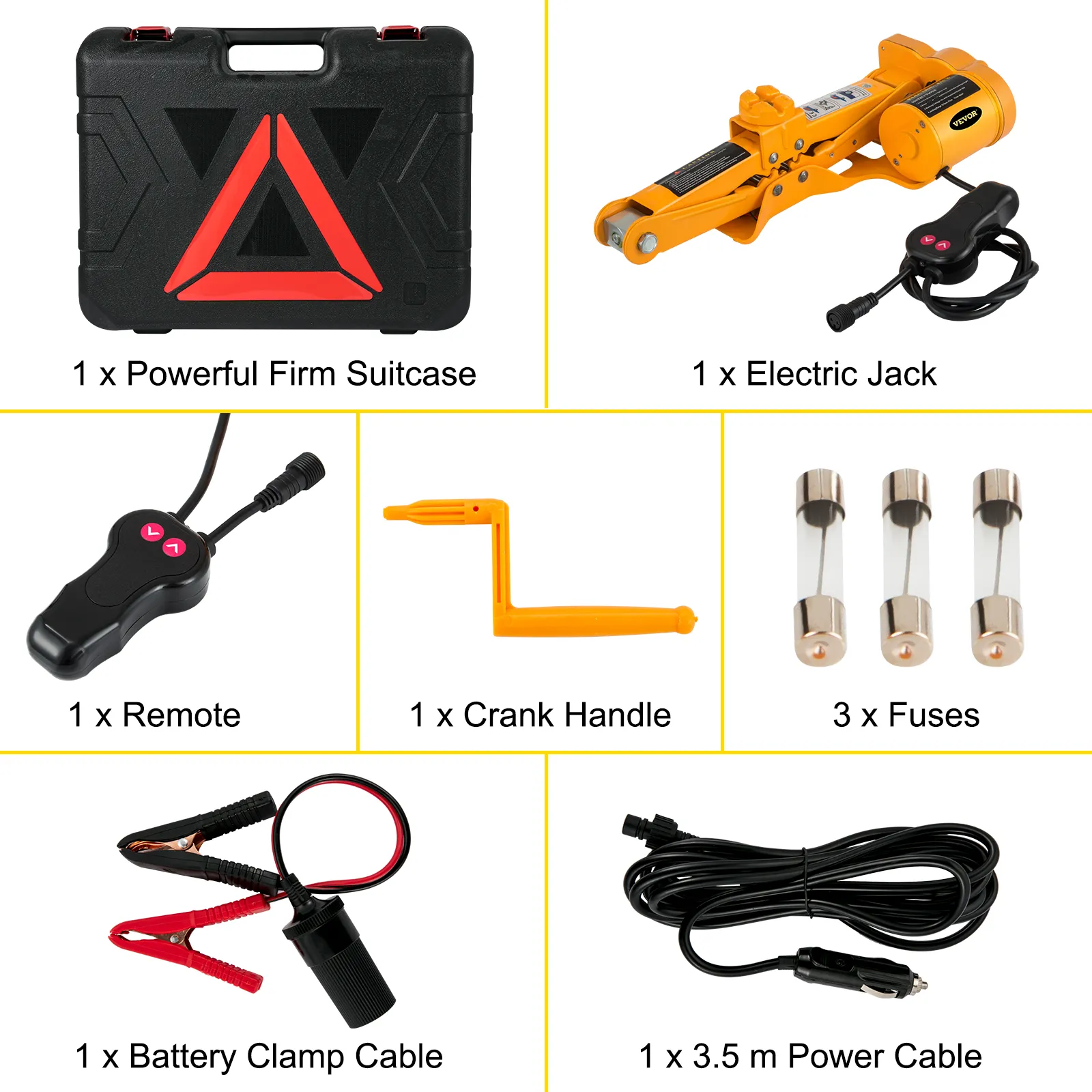 Der elektrische Wagenheber zeichnet sich durch die Überkopf-Schutzvorrichtung, den um 360° drehbaren Kopf, die Fernbedienung und das eingebaute LED-Licht aus und eignet sich für jeden Erwachsenen, der im Notfall den Reifen mit Leichtigkeit ersetzen kann.