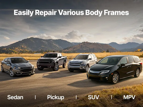 Robust & zuverlässig: Ausgestattet mit einer hydraulischen Pneumatikpumpe mit 45 MPa (6000 psi) für müheloses Richten und 8 Rollen für einfache Mobilität ist unsere Karosseriereparaturausrüstung ideal für den Einsatz an Limousinen, SUVs, LKWs und mehr