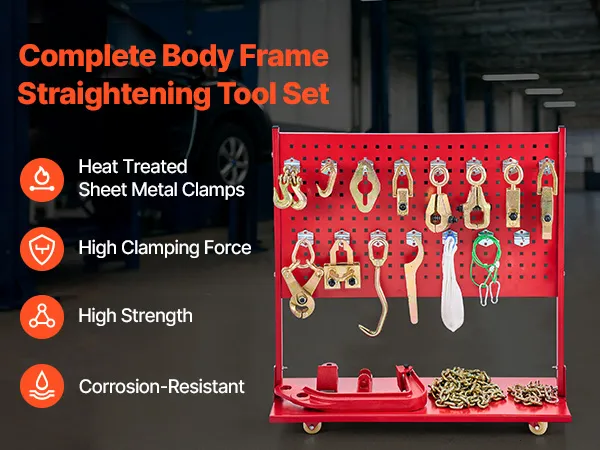 16-teiliges Richtwerkzeug-Set: Unser Karosserierahmen-Abzieher und Richtgerät wird mit Blechklemmen und wichtigen Werkzeugen für die Karosseriereparatur geliefert. Eine Doppelkopf-Befestigungsklemme sorgt für eine starke, stabile Klemmung und Sicherheit beim Richten