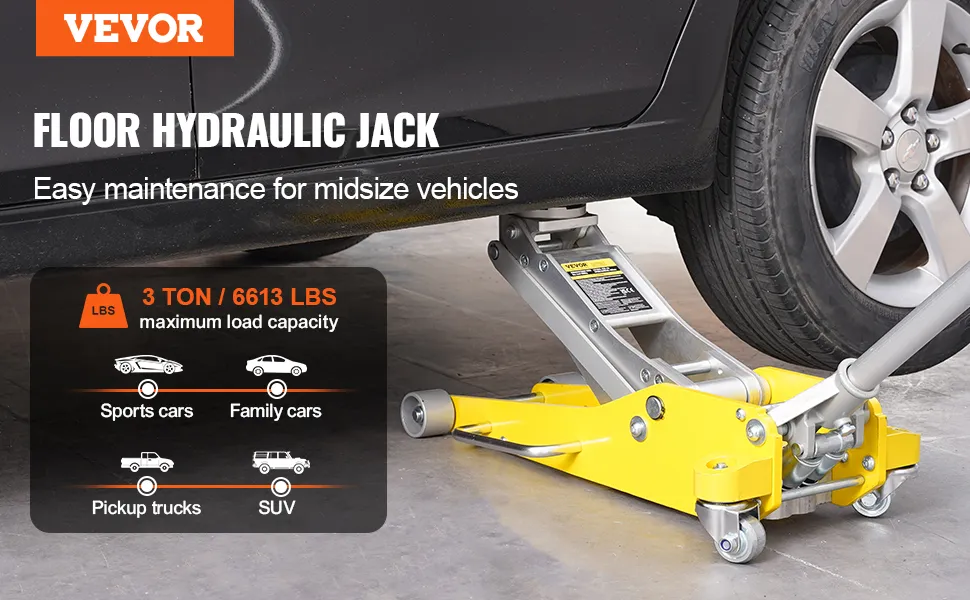 Der hydraulische Wagenheber kann Autos mit einem Gewicht von bis zu 3 t anheben und eignet sich daher für häufig genutzte Limousinen und SUVs.