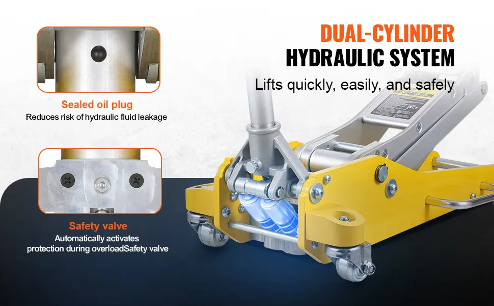 Wenn Sie den Wagenheber mit niedrigem Profil häufig verwenden müssen, ermöglicht das Doppelzylindersystem ein schnelleres Anheben schwerer Gegenstände. Die Konstruktion ist stabiler und minimiert das Risiko des Umkippens oder der Instabilität beim Anheben.