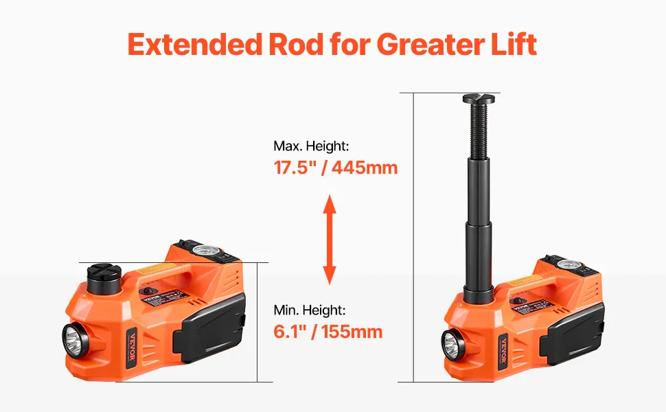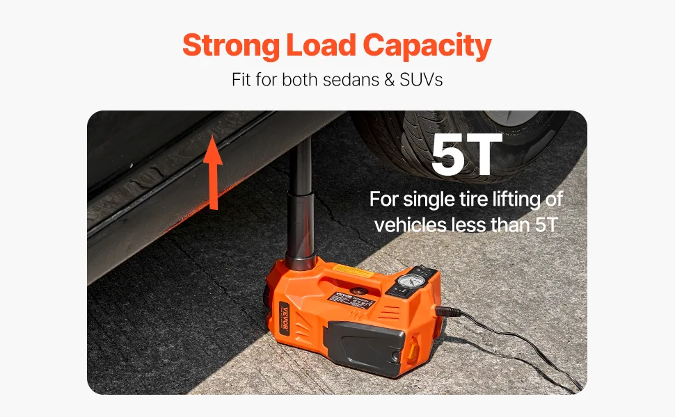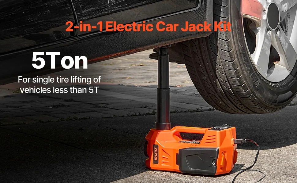 Dieses vielseitig einsetzbare elektrische Wagenheber-Set eignet sich ideal zum Anheben von Autos, SUVs, LKWs und mehr. Dank der hydraulischen Struktur, die ein sanftes und effizientes Anheben ermöglicht, erreicht es in nur 2 Minuten die volle Höhe und spart Ihnen so in Notfällen oder bei routinemäßigen Wartungsarbeiten wertvolle Zeit und Mühe.