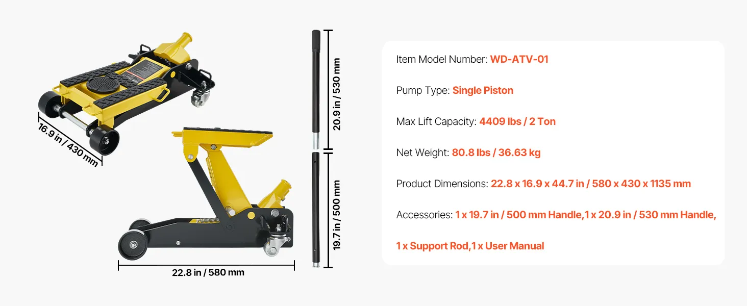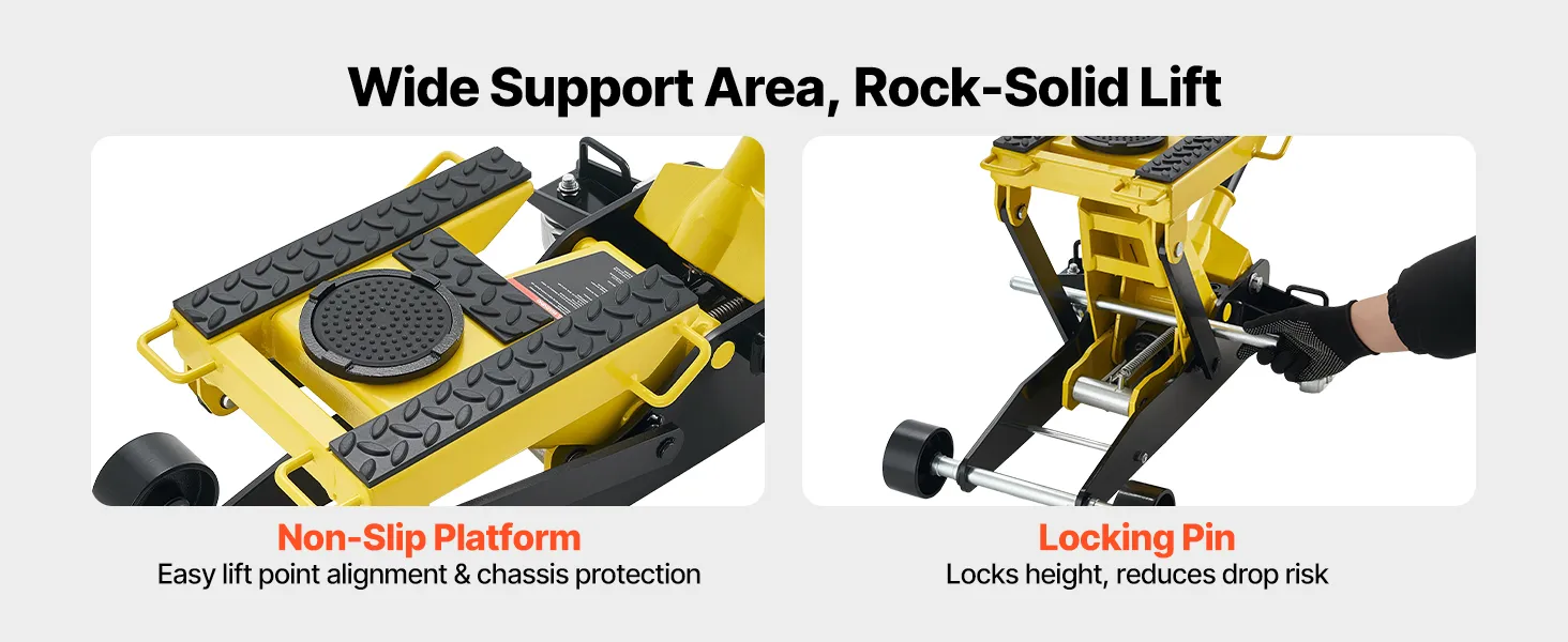 Der Wagenheber ist mit einem robusten Hydrauliksystem ausgestattet und bietet eine hohe Hubkraft sowie eine hohe Tragfähigkeit. Das Anheben erfolgt schnell und stabil. Er eignet sich ideal für die tägliche Wartung von Fahrzeugen im Haushalt und überzeugt durch seine langfristige Zuverlässigkeit.