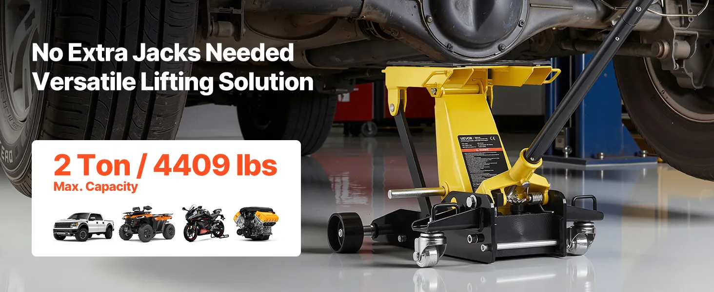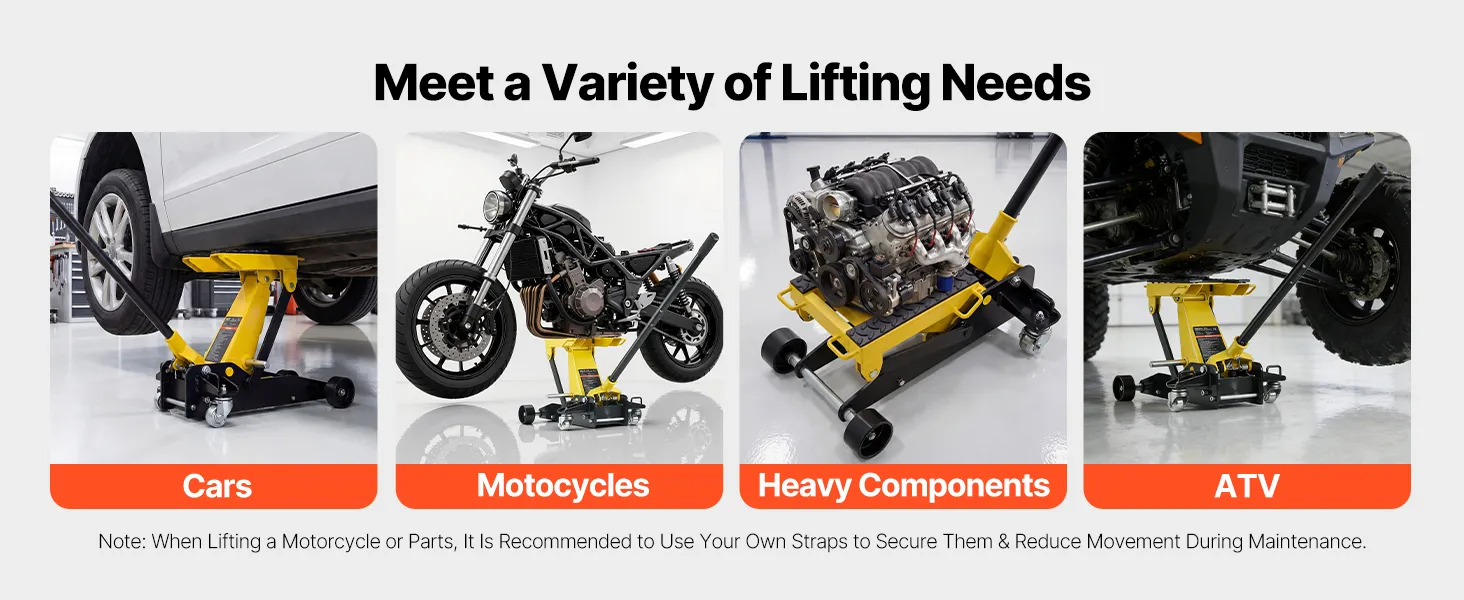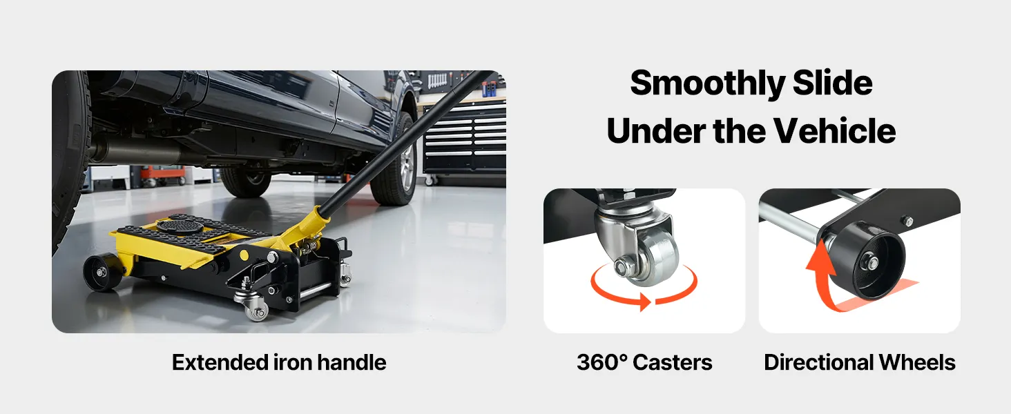 Der flache Wagenheber ersetzt mehrere Hebewerkzeuge und bietet so eine vielseitigere Lösung. Er hebt Autos, Motorräder und schwere Autoteile an, ohne Ihre Garage zu überfüllen.