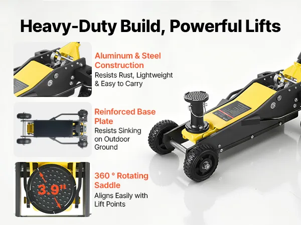 Dieser Wagenheber mit hoher Hubkraft überzeugt durch seine robuste und hochfeste Konstruktion, die Wackeln und Einsinken beim Anheben reduziert. Die Bedienung bleibt leichtgängig und kontrolliert. Er bietet zuverlässigen Halt und sorgt für einen stabilen Stand des Fahrzeugs während des Anhebens.