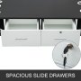 Die schwarz-weiße VEVOR-Stylingstation zur Wandmontage ist mit abschließbaren Schubladen ausgestattet. Diese Schubladen bieten eine sichere Aufbewahrung Ihrer wertvollen Werkzeuge. Sie können Ihre Scheren, Rasierer und andere Geräte sicher aufbewahren. Eine der Schubladen hat einen Schlüssel, was für zusätzliche Sicherheit sorgt. Diese Funktion ist nützlich für diejenigen, die ihren Arbeitsbereich teilen. Die Schubladen sind geräumig und bieten Platz für Dutzende von Gegenständen. Sie gleiten reibungslos und erleichtern den Zugriff. Der Verriegelungsmechanismus ist einfach, aber effektiv. Diese Station hält Ihre Werkzeuge organisiert und sicher.